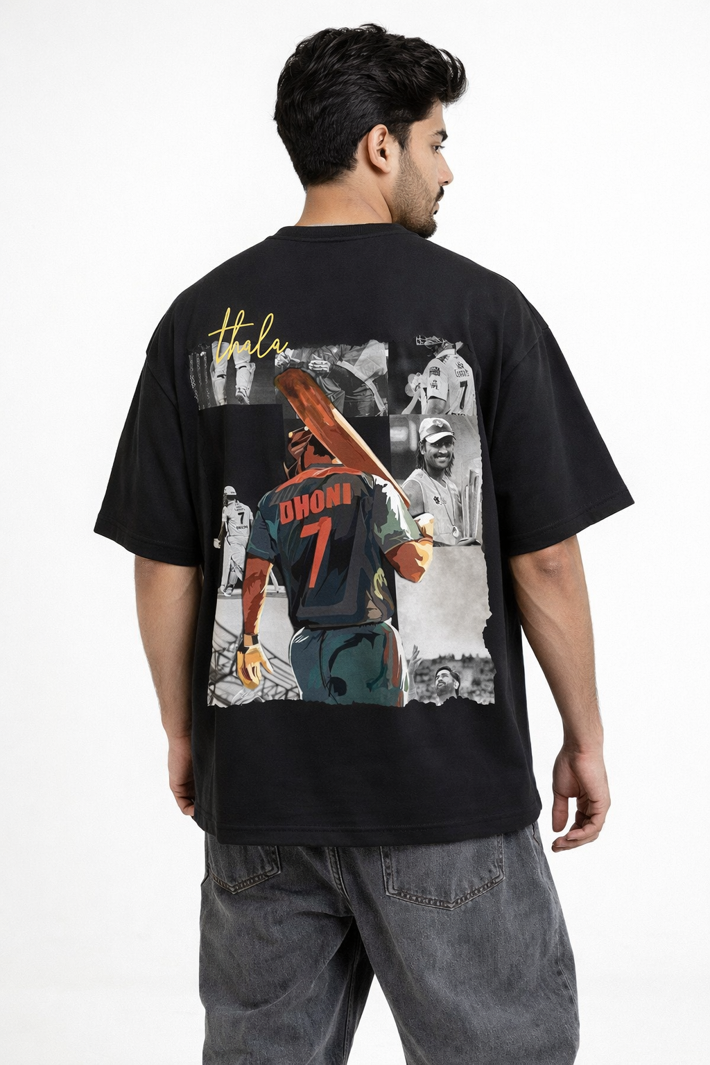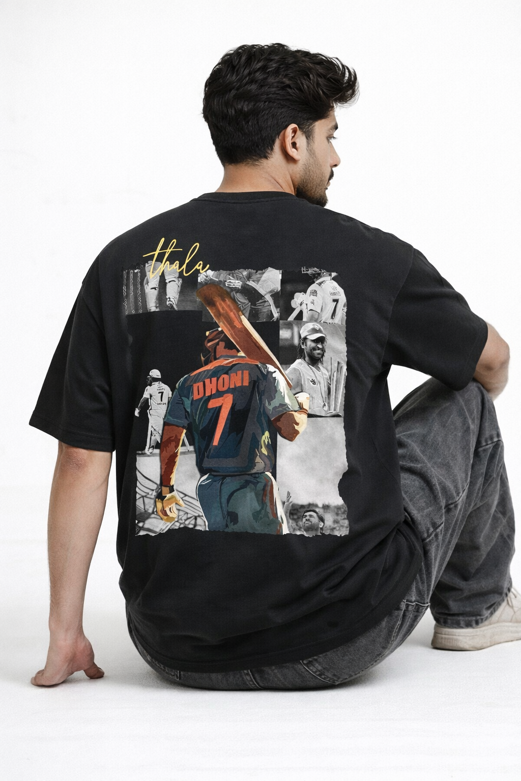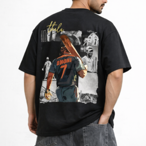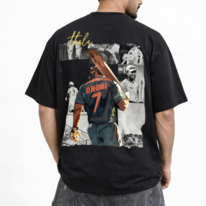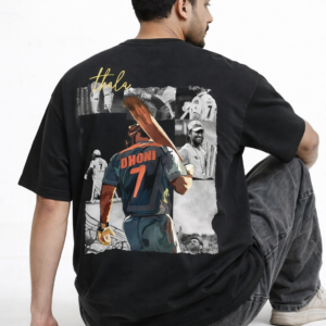 Show your love for the legendary captain MS Dhoni with this stylish Thala 7 Oversized Black T-Shirt. Designed for true cricket fans, this premium T-shirt features a powerful graphic of Dhoni walking with his iconic jersey number 7, representing leadership, calmness, and legendary finishing style.